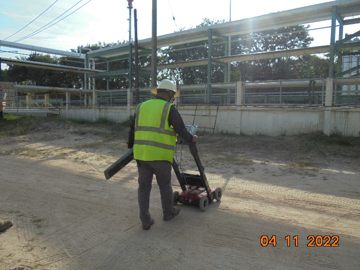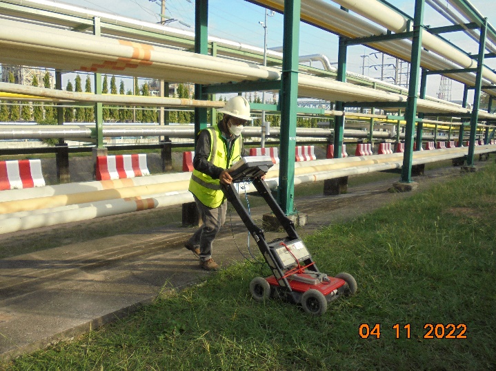 Underground utility survey using Ground Penetrating Radar (GPR) to locate pipelines, water and gas lines, as well as underground cables, under the construction site.